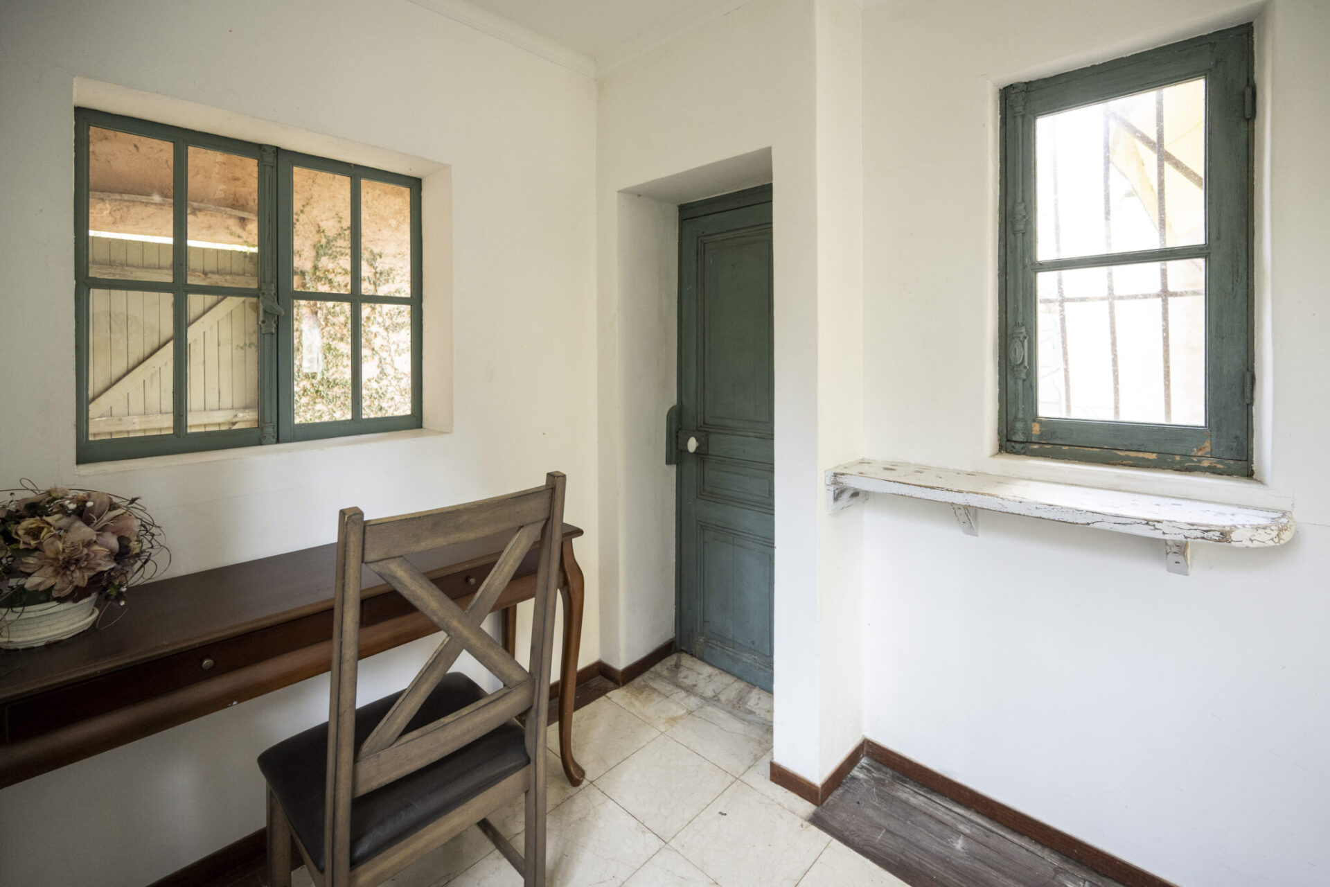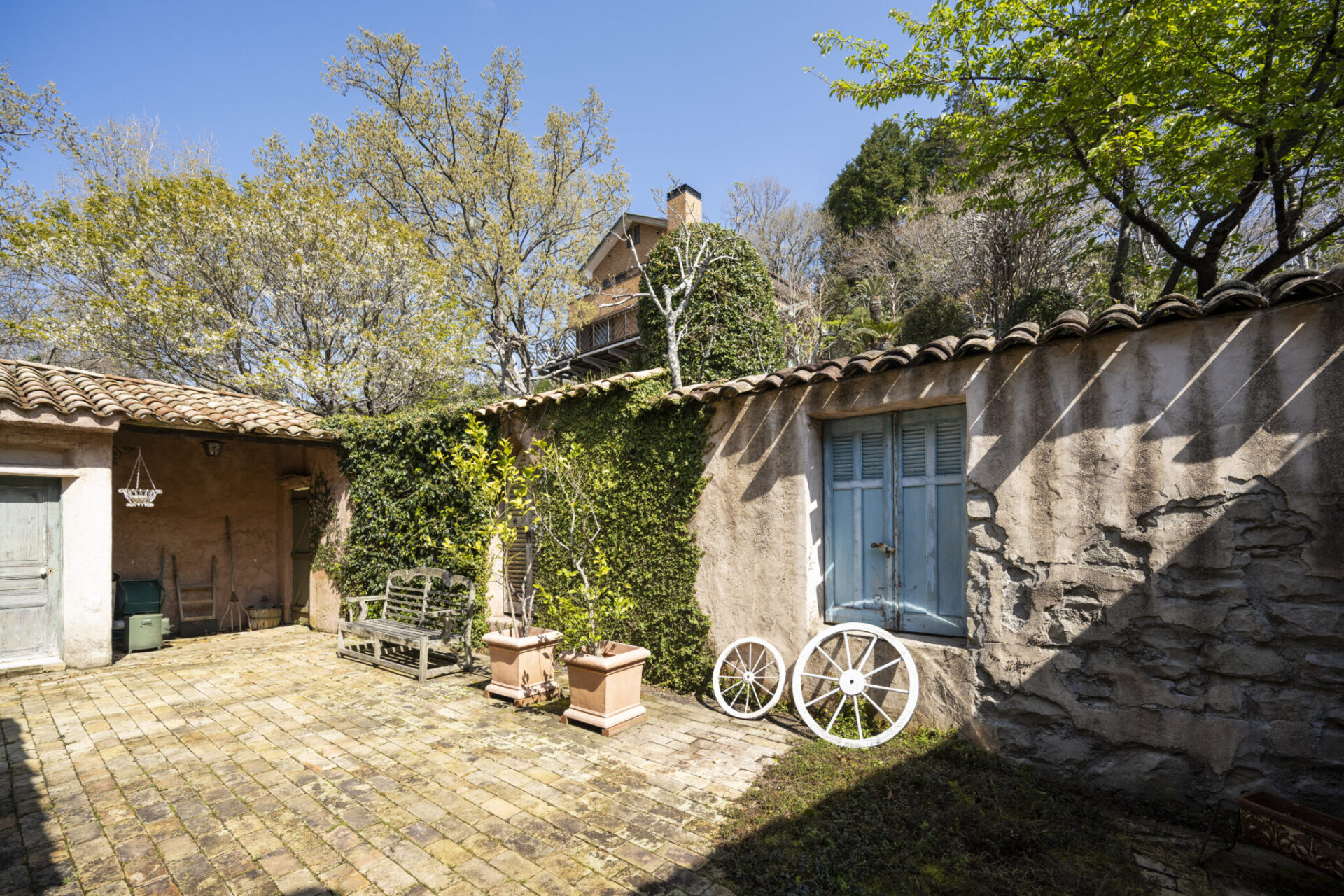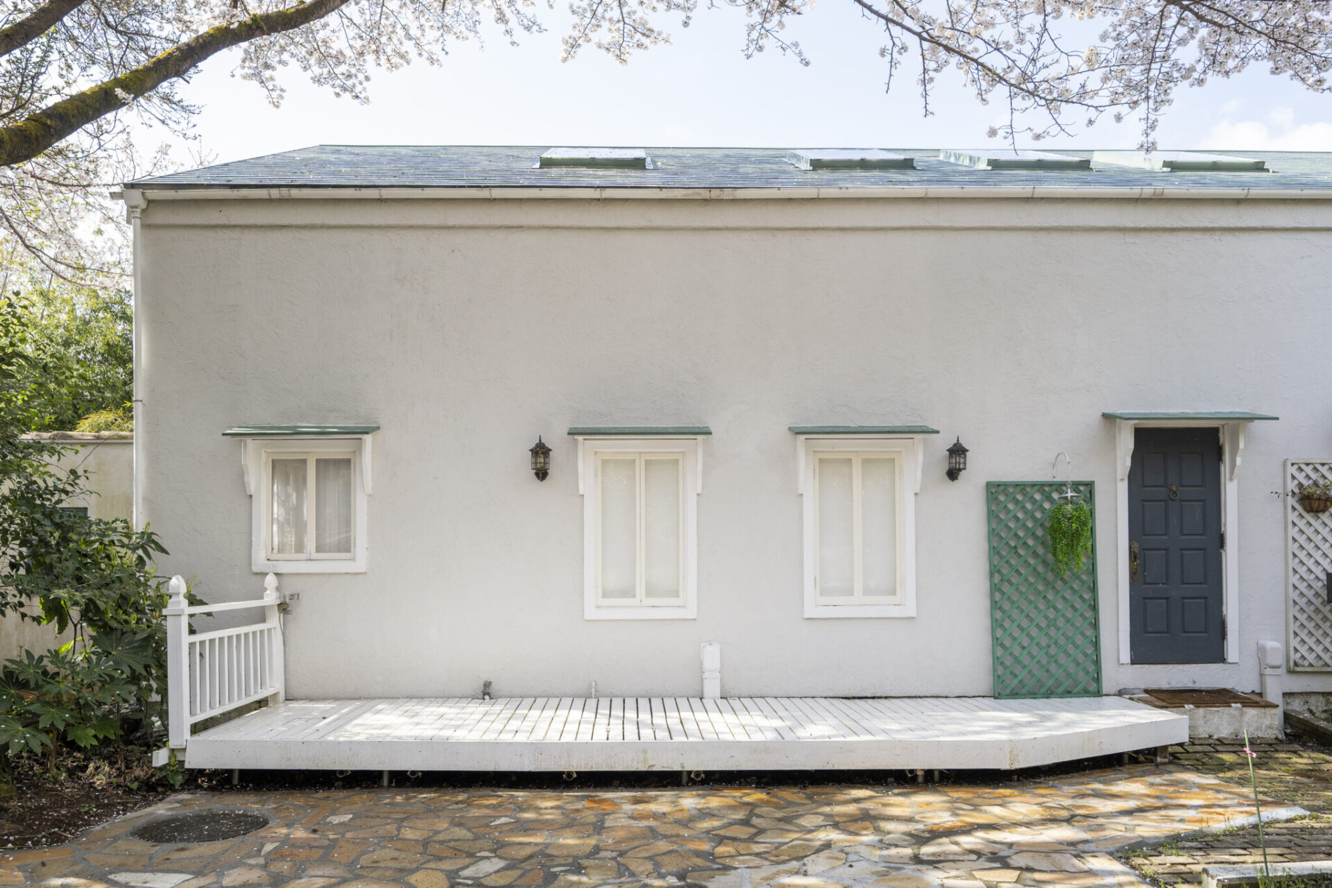 石畳のガーデンテラスやアンティークなドアがアクセントとなり、まるでヨーロッパの郊外に佇む邸宅のような雰囲気を醸し出します。