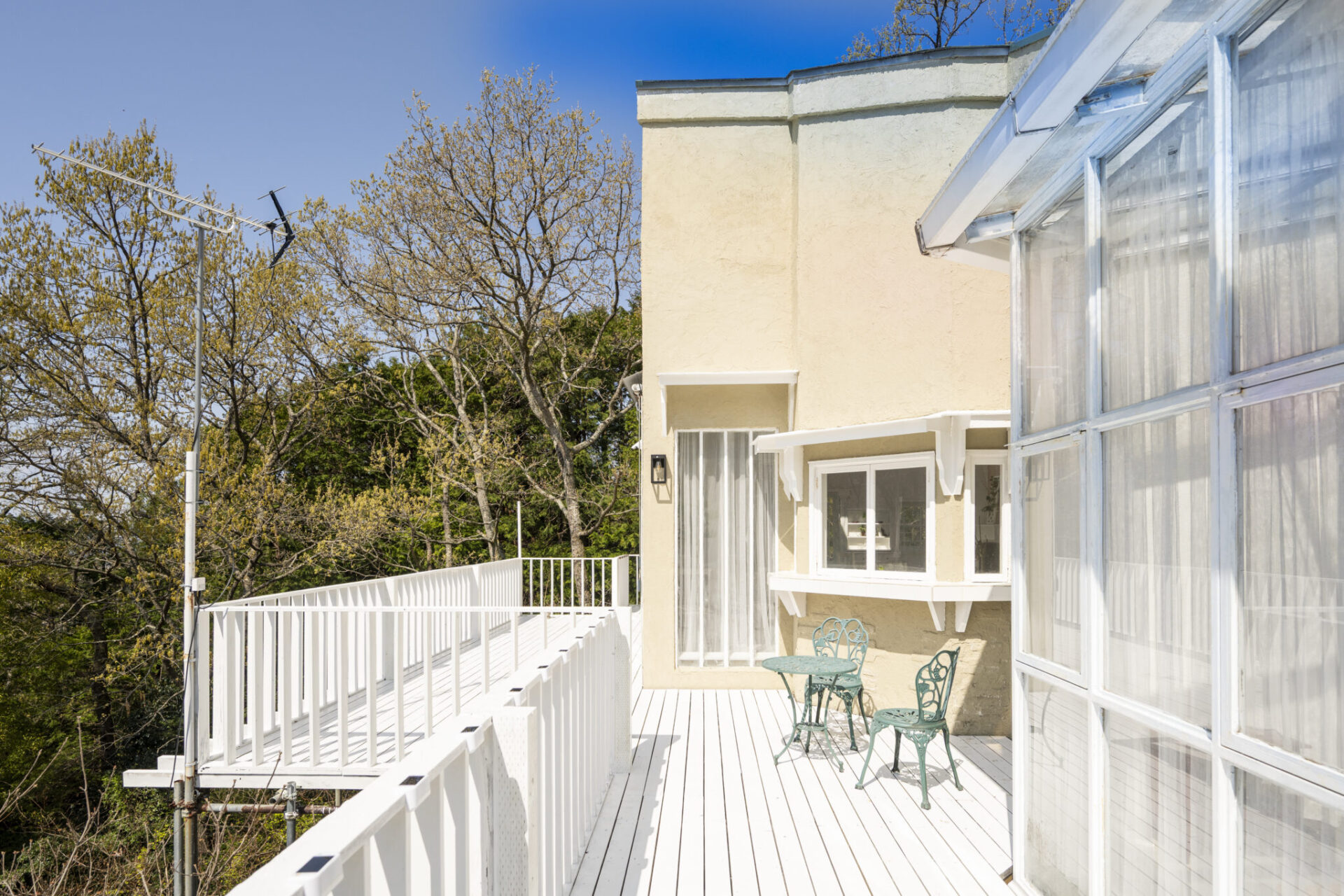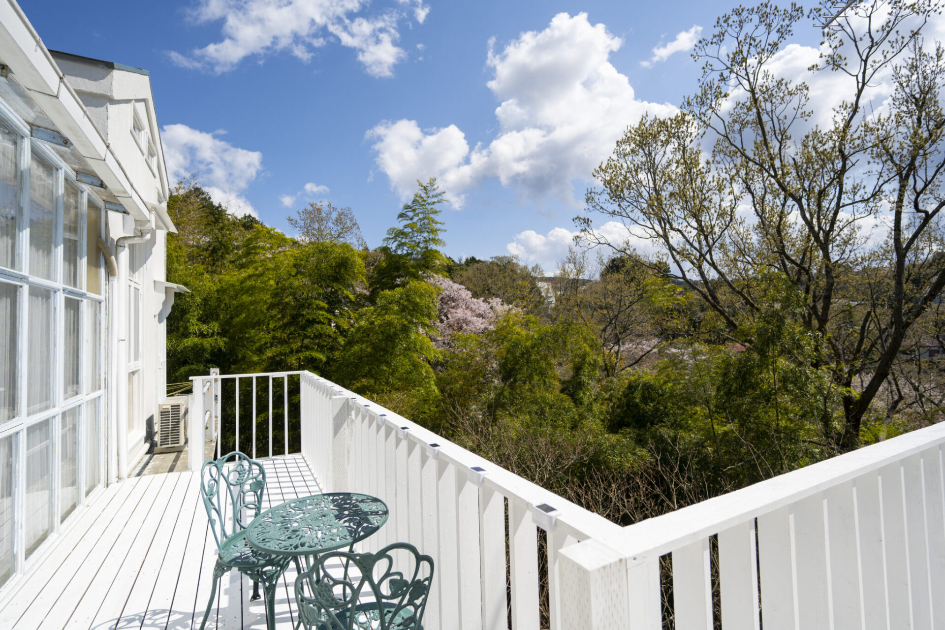 自然豊かな南箱根ダイヤランドの中でもひときわ目を引く、白を基調とした洋風建築。